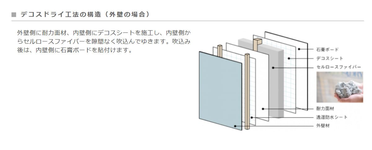 デコスドライ工法とは、断熱欠損の生じない乾式吹込み工法
